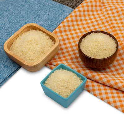 Eetbare gelatine is verkrijgbaar in een reeks bloem grammen die variëren van 80 tot 280. Met uitzondering van speciale producten, dit product is gewoonlijk vrij van toegevoegde kleuren, smaken, conserveringsmiddelen,en chemische toevoegingsmiddelenAls voedsel wordt gelatine algemeen erkend als veilig (CRAS). De meest wenselijke kwaliteit is het smelten in de mond en het vermogen om thermo-reversibele gels te vormen.gelatine blijft stabiel over een breed pH-bereik en wordt relatief niet beïnvloed door de ionensterkte.